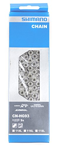 Studio : Shimano Publisher : Shimano Product Description The Shimano CN-HG93 Ultegra HG 9 speed chain gives you the same performance and reliability that you've come to expect from Shimano's road bike line for you mountain bike. You'll experience smooth and quick shifting on all your rides thanks to Shimano's Hyper Glide system. The Shimano CN-HG93 Ultegra 9 speed chain is compatible with all Shimano 9 speed Hyper Glide drive trains. 0