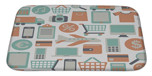 Gear New Pattern with Web Shopping Icons Bath Rug Mat No Slip Microfiber Memory Foam