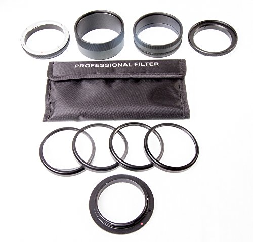 Optodio Macro Photography 8-in-1 58mm Kit - Reverse Ring, Close-Up Lenses and Metal Extension Tube for Canon Rebel DSLR