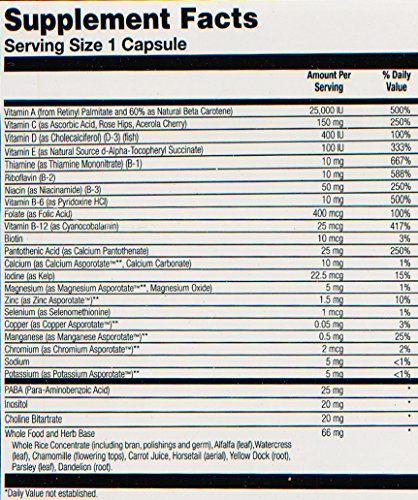 -. Binding : Health and Beauty -. Brand : Solaray -. EAN : 0076280109054 -. Feature : Contains an ideal blend of nutrients along with a whole food and herb base to provide complete dietary support for a hectic lifestyle / Keeps you protected from free radicals that can damage your immune system to keep you in the game / Does not contain any iron for those looking to limit their intake -. IsAdultProduct : 0 -. Label : Solaray -. LegalDisclaimer : These statements have not been evaluated by the Food & Drug Administration. This products is not intended to diagnose, cure, mitigate, treat, or prevent any disease. -. Manufacturer : Solaray -. MPN : S10905 -. NumberOfItems : 1 -. PackageQuantity : 1 -. PartNumber : S10905 -. ProductGroup : Health and Beauty -. ProductTypeName : HEALTH_PERSONAL_CARE -. PublicationDate : 2014-10-17 -. Publisher : Solaray -. ReleaseDate : 2015-03-19 -. Size : 120 -. Studio : Solaray -. Title : Solaray Once Daily Iron Free Two Stage Timed Release Vitamin Capsules, 120 Count -. UPC : 076280109054