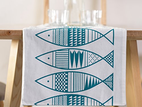 -. Title : Tomorrow's Life 100% cotton linen table runner,home decoration,white/blue fish pattern,13×78 inch