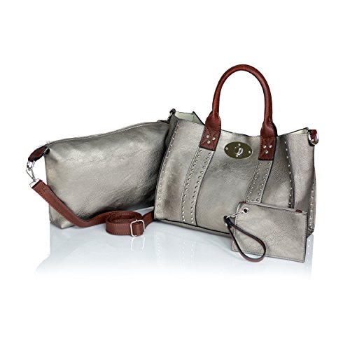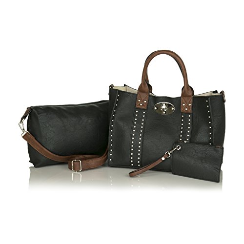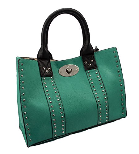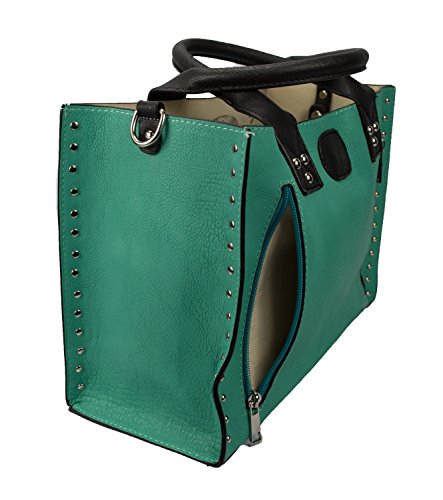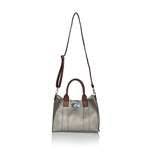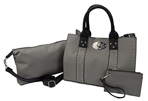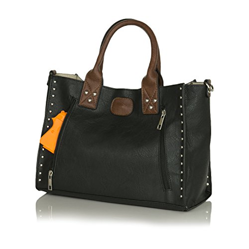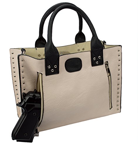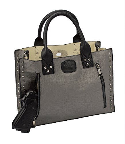 Product Description A balance of fashion-forward colors, stunning details, and total self-defense - this quality leatherette satchel is perfect for the traveling fashionista. Featuring a smooth structured exterior, an open tote interior, durable tubular handles, and beautiful silver 'statement' hardware. Flip to the back side, and this classy swagger bag is equipped with two discrete slant zipper gun concealment pocket openings, allowing you both right and left hand draw depending on your need. Access your handgun or pistol from the hidden pocket with ease. Also included with the handbag are: one adjustable 46" long (24" drop) detachable shoulder strap; one full-size matching leatherette cosmetic bag (measuring 13" W x 9" H, fully lined with zipper); and one matching leatherette coin purse wristlet. Purse available in an assortment of fashion colors. Make it your everyday bag, or treat someone you know to a spectacular and thoughtful gift. Dimensions: Handbag - 13" W x 9" H x 5" D; Concealed Carry weapon pocket - 9" W x 6" H w/ a 6" slat zipper opening. 0