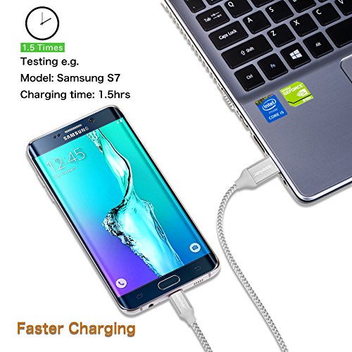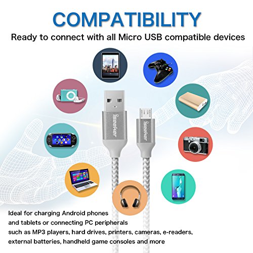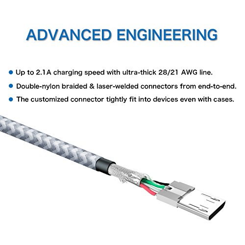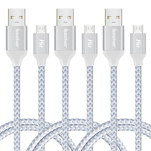 iSeekerKit Micro USB Cord 3.3ft High Charging Speed USB 2.0 A Male to Micro Nylon Braided Sync and Charge Cable with Aluminum Connector for for Samsung, HTC, Android and more [3 Pack]