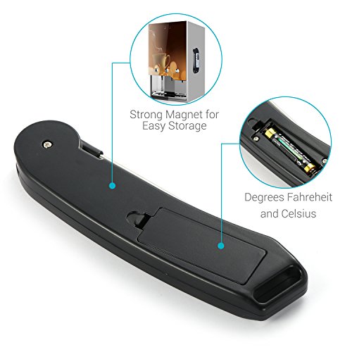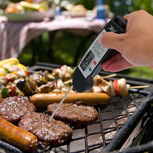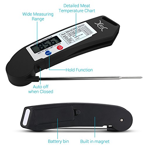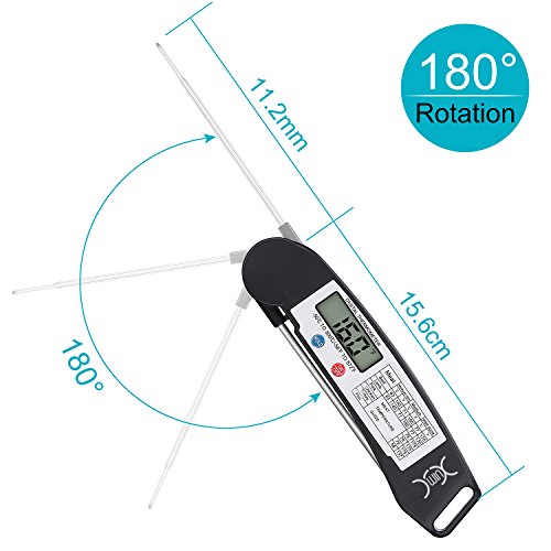Studio : YXwin Publisher : YXwin Product Description Description: YXwin meat thermometer is suitable for all kinds of foods and liquids, With the meat temperature chart, you will know perfect doneness of your food or liquid. It makes home cooking and outdoor bbq grilling easier. Let's say goodbye to the overcook and boring waiting time ! Note: Use screwdriver to tighten the screw properly near the battery box to avoid probe popping out. Tips: Shift the switch under the battery bin to set the default to "Fahrenheit" or "Celsius". How to use: Just open the probe and insert it couple of centimeter into the food you want to know the temperature of. Wait 4-7 seconds, a highly accurate temperature reading will be displayed on the built-in LCD screen. Specification: Length of Probe: 11.2cm / 4.4Inches Expandable Size: 26.8cm / 10.55inches Temperature Measurement Range: -55°F - 572°F / 50°C -300°C Reading Response Time: 4-7 seconds Accuracy: ± 0.1℉/°C Material: Food-safe ABS plastic case and stainless probe Usage: cooking thermometer, BBQ thermometer, Oven thermometer, Smoker thermometer, Sugar thermometer, baking thermometer, Poultry thermometer, Liquid thermometer, Milk thermometer Function: Celsius/Fahrenheit switchable - There are 2 choice to select the desired temperature unit. Auto Shut-Off Smart Design - Auto-shut off to save battery life if readout stays for 10 minutes. Fast Accurate Readout - It only needs 4-7 seconds to show the reads. You needn't to worry about over cooking or burnt issue anymore! Easy to Carry Store - It is lightweight with foldable proble, perfect for you to take it out for outdoor . Warm Tip: 1. Please do not leave thermometer into oven while cooking. 2. Please do not touch hot probe with your hands directly. 3 Please wash the metal probe in soapy water. Clean thermometer by hand. Do not completely dip into water. Package Included: 1 x digital Thermometer 0