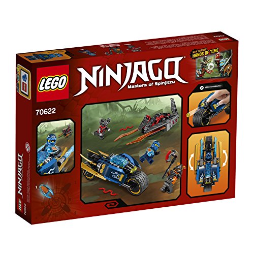 Beat commander blunck's vermillion racer to claim the slow motion time blade with jay's desert lightning bike, featuring stud-shooting headlight-style elements, foldout lightning bolt booster elements and big wheels. This fun toy includes three mini figures.