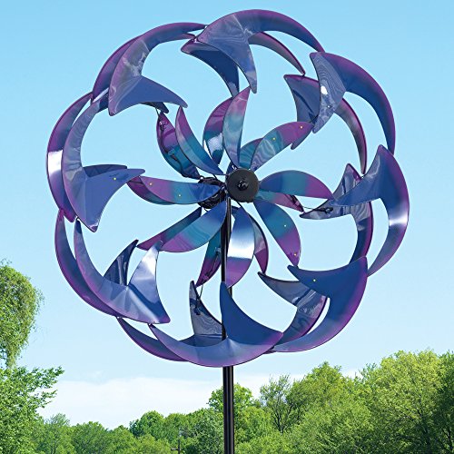 Bits and Pieces - Wind Powered LED Sea Breeze Wind Spinner Decorative Lawn Ornament Wind Mill - Spectacular Kinetic Garden Spinner with Light show