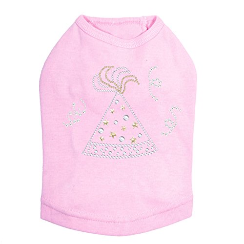 Product Description Party Hat - Dog Tank for small and large dogs. 3.5" X 2.5" (small), 5" X 4" (medium), 6" X 5" (large) design with clear, silver, gold rhinestones nailheads. 0