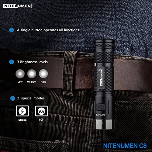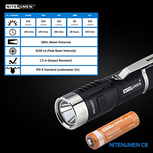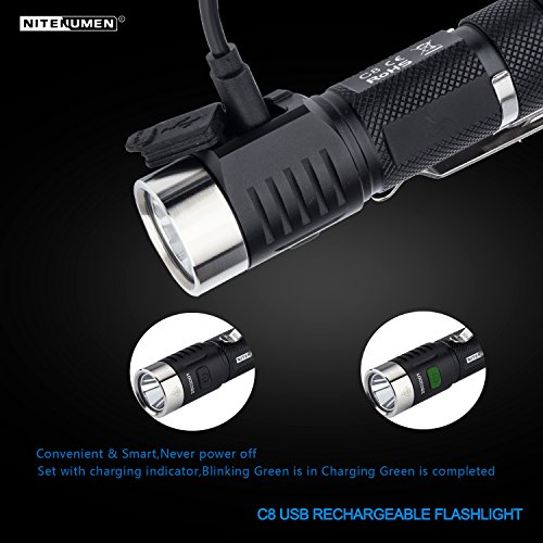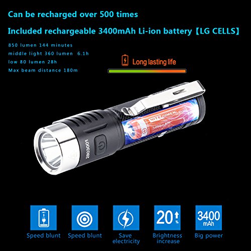 LED Flashlight with 18650 3400mAh Li-ion Battery,USB Rechargeable CREE EDC Flashlight,Nitenumen C8 850 Lumens Flashlight