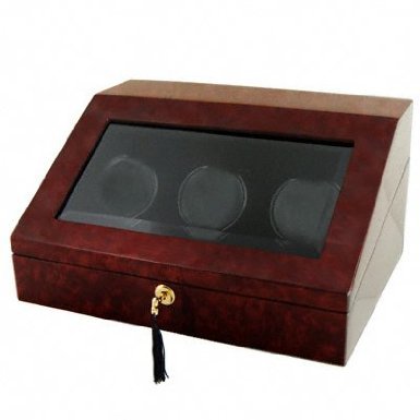 -. Feature : Outer Finish: Teak Laquer Finish buffed to a High Gloss with a sloped front viewing window. / Interior Surface: Lined in Rich Suede for oscillating three timepieces. / Programmable Sophisticated Microprocessor Control for winding cycles of 650, 800, 950, 1300 Turns-Per-Day (TPD). Programmable Choice of Clockwise, Counter-Clockwise, or automatic reversing rotation. / Dimensions (inches): 6.8H x 13.2W X 10.2D. Operates using Alkaline C Cell Batteries. / Made in the USA. 2 year warranty for any defects in materials and/or workmanship.