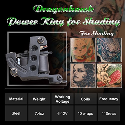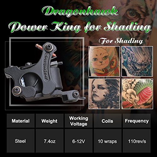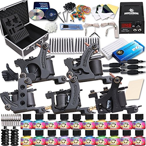 Dragonhawk Complete Tattoo Kit 5 Dragonhawk Mate Tattoo Machine Gun 20 Immortal Tattoo Inks Power Supply 50 Needles Grips Tips with Case 5-1