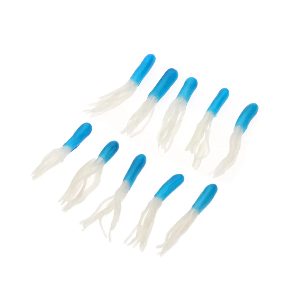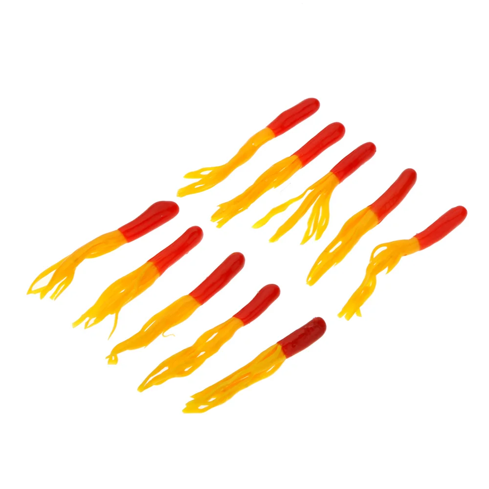 Package includes about 35 pieces soft lures and 10 jig head hooks of small size.