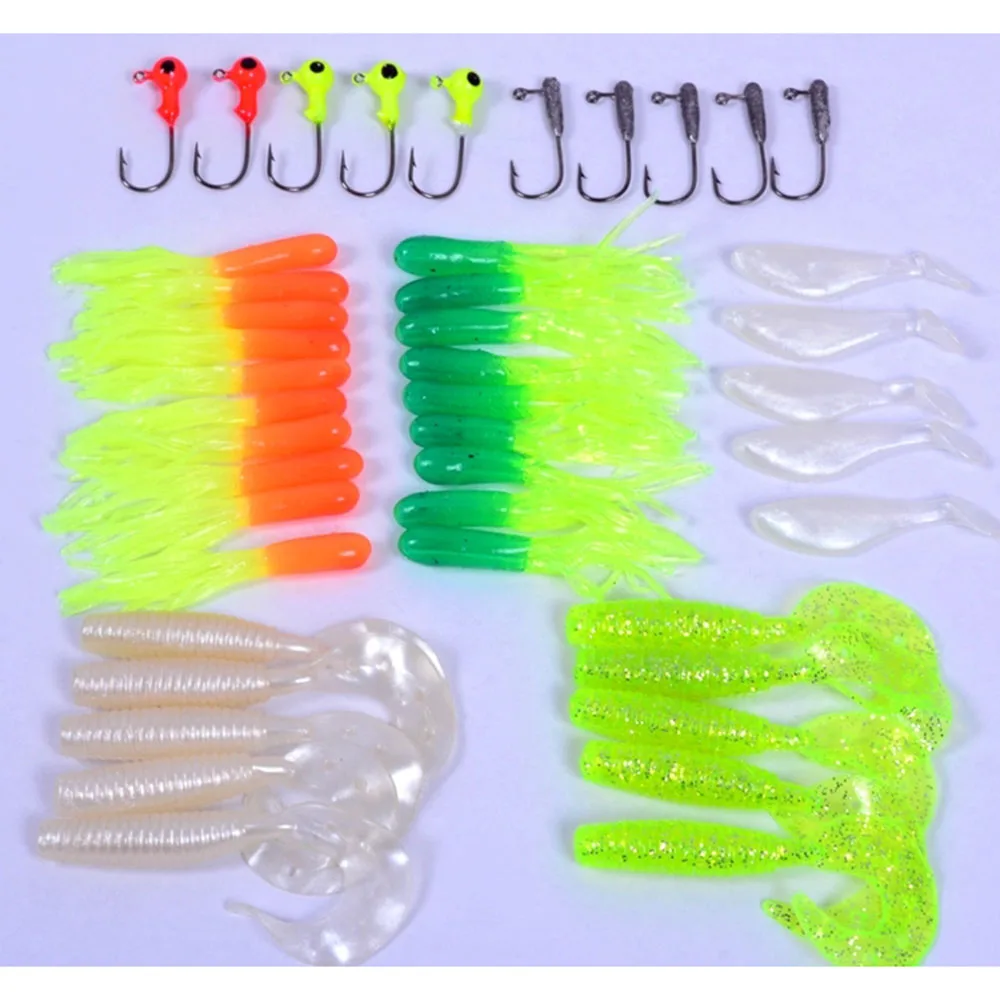35Pcs Soft Worm Lure Carp Fishing Lure Set + 10 Lead Head Jig Hooks Simulation Suite Soft Fishing Baits Set Tackle Pesca