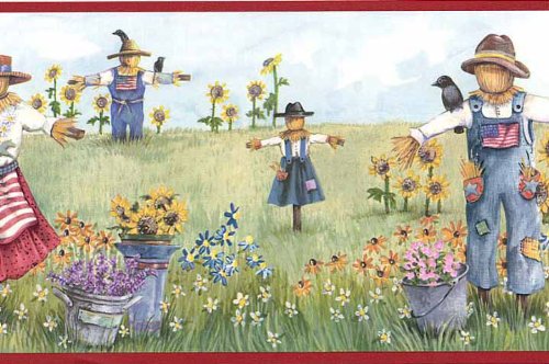 -. Title : Scarecrows & Sunflowers Wallpaper Border CUP3373