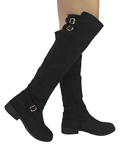 Binding : Apparel Product Description Fashionable tall boots. The height comes just under the knee. Quality faux leather with a buckle detail and an inside zipper. The zipper is functional for ease off putting on and taking off. These boots are full of style and very comfortable. Layer with socks for the perfect warm weather boot that makes a fashion statement. 0