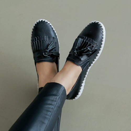 Real leather tassel slip-on natural comfort style outfit luxury jeans shochu