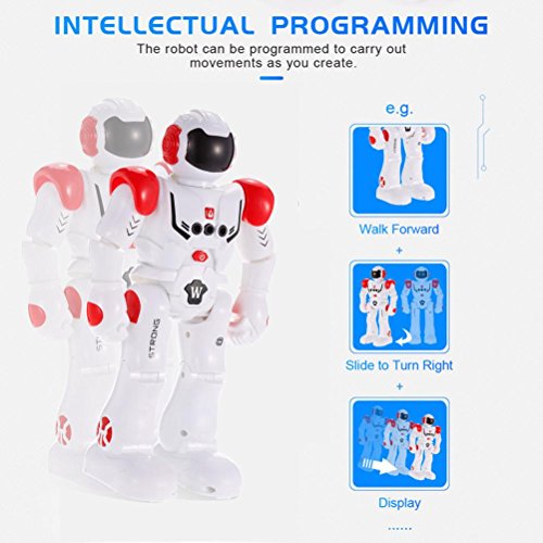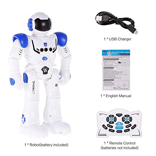 -. Feature : It can slide forward/backward, slide forward/backward, turn left/right.The robot can sing and dance to entertain you. / The robot can be programmed to carry out movements as you create.Gesture control: using simple gestures, the robot can react to your gestures with basic movements, along with sound effects. / With the rotating wheel at the bottom, it will avoid obstacle without tripped.Best gift for your or friend's kids. A good companion for them. / Package Information: Package size: 29.8 * 23.1 * 9.8cm / 11.73 * 9.09 * 3.85in,Package weight: 686g / 1.51lb / Package Content: 1 * Robot(3.7V 400mAh lithium battery(built-in)),1 * Controller,1 * USB charger,1 * English manual