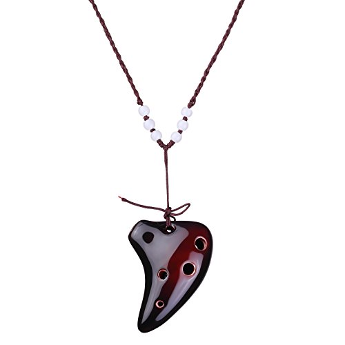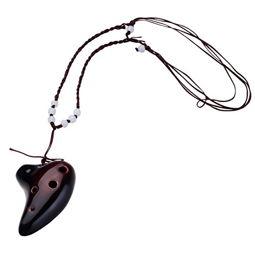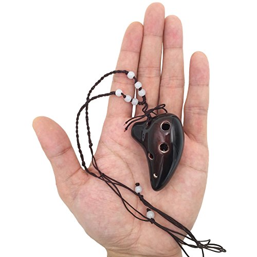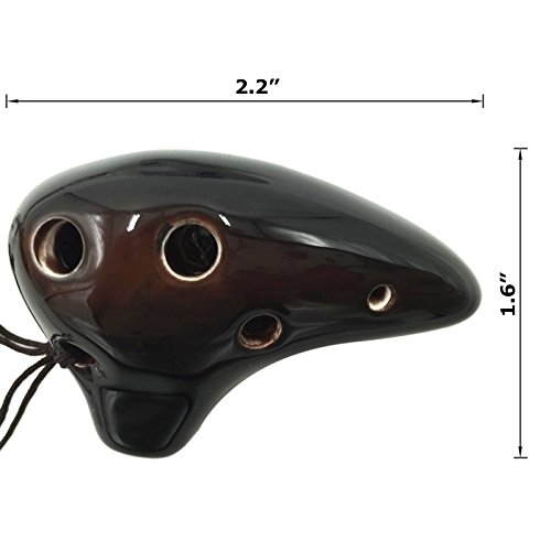 L'MS 6 Hole Ceramic Strawfire Mini Ocarina Legend of Zelda Triforce Design with Free Tutorial Songbook (Coffee)