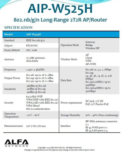 원본상품명: Alfa AIP-W525H V2 1000mW 802.11b/g/n300Mbps ハイパワ? WiFi 無線LANル?タ?(ダブル5dBiアンテナ搭載)プライバシ?セパレ?タ?機能有り