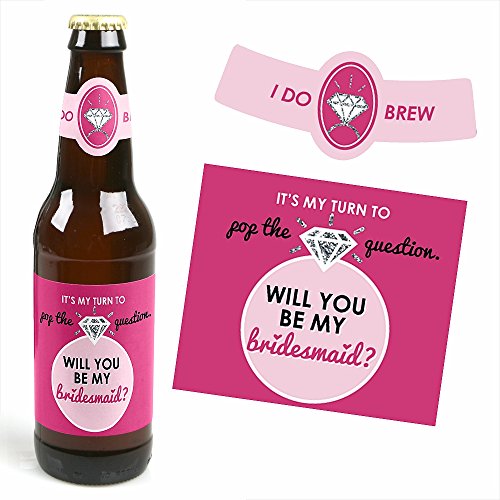 Studio : Big Dot of Happiness, LLC Publisher : Big Dot of Happiness, LLC Product Description Never know how to ask someone to be in your wedding? Our Pop The Question - 6 Will You Be My Bridesmaid Beer Bottle Label Stickers and 1 Carrier are the perfect idea to ask your bridesmaid. This set comes with a craft paper carrier and with 6 soda or beer bottle labels that are printed on sticker paper that is waterproof. Apply labels to room temperature bottles. Apply beer bottle labels either after removing original label for best results or put over existing labels if you choose. Chill after you are done applying labels. For the two larger labels that are left over apply to the front and back of paper carrier. Use the two smaller ones to put on each end of the paper carrier to give you the completed look. (Beer in image is obviously NOT included). 0