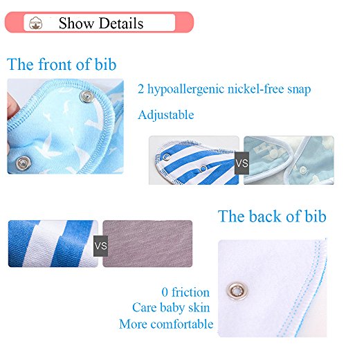 ADJUSTABLE NICKEL-FREE SNAPS - Each baby drool bibs comes with 2 nickel-free snaps that allow each bib to be adjustable in size to fit newborns and toddlers, with ages ranging from 0-24 months. The snaps are secure, making it difficult for infants and toddlers to unfasten but are easy for parents to snap on and off.