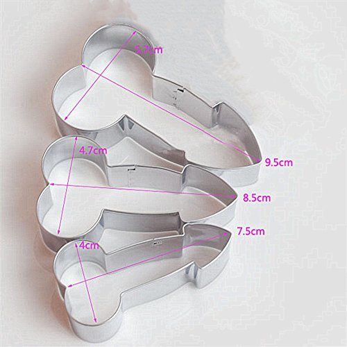 Shuxy Stainless Steel Penis Cookie Cutter 3-Piece Set for 3D Bachelorette Cake Cookie Cutters Set DIY Party Favor Novelty ( S - M - L)