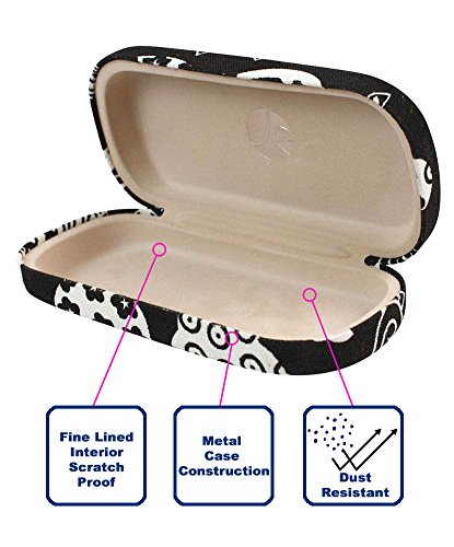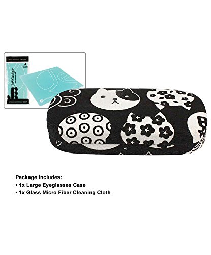 Studio : JAVOedge Publisher : JAVOedge Binding : Apparel Product Description Protect your eyeglasses in this large eyeglass case featuring a cat print. This hard-shell, structured eyeglass case is lined with fabric on both the exterior interior and features a cat print. The interior is lined and will not scratch up the lenses. The case fits larger sized glasses. The eyeglass case does not take up much room in a purse, or when stored on a bathroom counter. The micro fiber cleaning cloth is a safe way to keep your glasses clean from smudges, dust, and fingerprints. Protect your eyeglasses and store them in this large cat patterned eyeglass case. 0