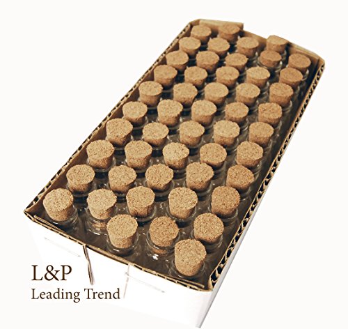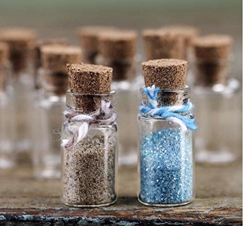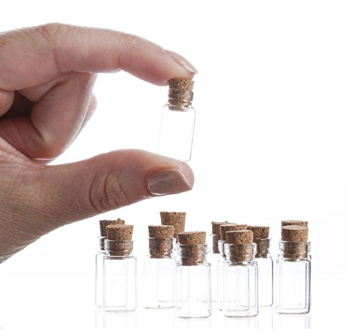 Charmed Small Glass Mini Bottles with cork for Arts & Crafts, jewelry making, Decoration, Party Favors of 2cm tall Pack of 50