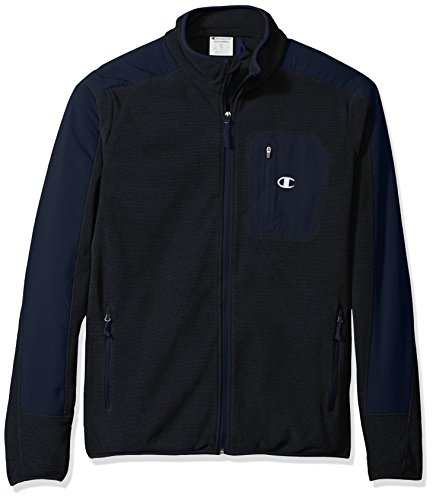 Studio : Champion Mens Outerwear Publisher : Champion Mens Outerwear Binding : Apparel Product Description Champion men's big and tall mock neck, set in sleeve, textured fleece features a 4-way stretch overlay strategically added for water resistant. Zip front entry w/stretch elastic cuff and hem, zippered exterior pockets . An exterior heat transfer chest pocket adds accent of color as well extra storage space. Interior smart pocket and media portal finish the details of this fleece. 0