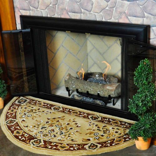 These hearth rugs are inspired by traditional Persian designs. They have five borders and floral medallions in the center. We offer them in rectangles and half rounds, in blue, beige and burgundy.Hearth rugs protect your floor and will add beauty and warmth to your fireplace. They can also be used as door mats or as occasional rugs throughout your house. (For indoor use only).All our hearth rugs are woven from the highest quality 100-Percent virgin wool and dyed in rich saturated colors. They are fire resistant and meet federal requirements for surface flammability of small carpets (Part 1631 - FF2-70).Warning: your pets will probably make a bee-line for these rugs so they can bask in the warmth of the fire!Feature