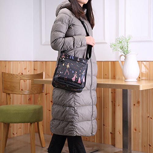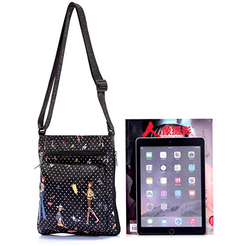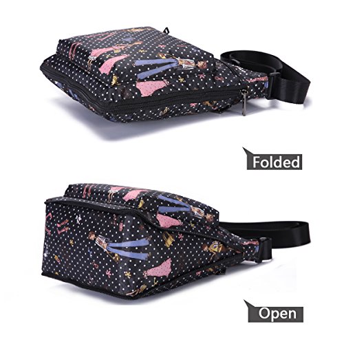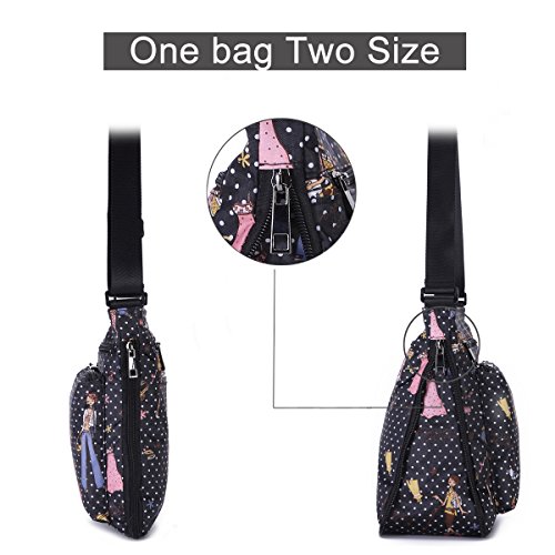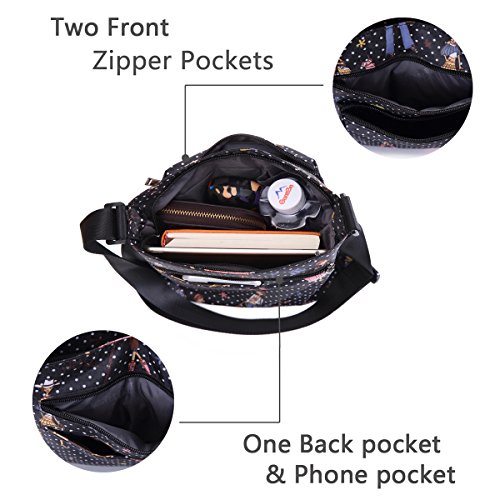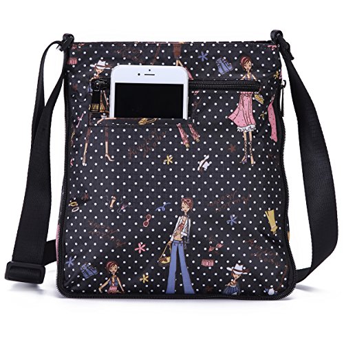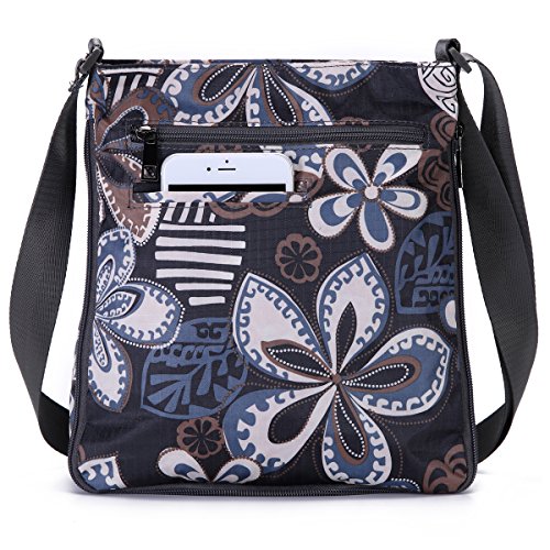-. Feature : Material - lightweight,durable,wear-resistant,easy-clean nylon and 100% water-resistant lining. / Dimension(L*W*H) - 9.5 x 4.4 x 10.3 inch,adjustable shoulder strap,26"-49.5" drop. / Foldable zipper - a adjustable zipper at the bottom,you can change the size according to your needs. / Many pockets - a main pocket with 3 internal pocket,2 exterior zip pockets and 1 phone pocket in the back(fit iPhone+) / Fashion style - simple and casual design,fashion flower pattern,roomy compartment,meets your daily needs and perfect for traveling,shopping,climbing,school,cycling,work,drive,outdoor and sports etc.