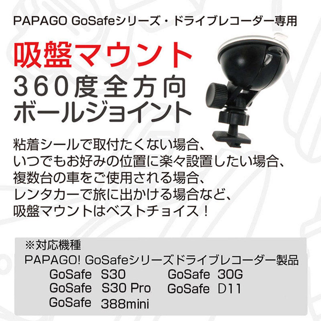 If you do not want to install with adhesive stickers, you want to install easily in your favorite position at any time, when you use more than one car, when going on a trip with car rental, sucker mount is the best choice! PAPAGO drive recorder GoSafe S30 /