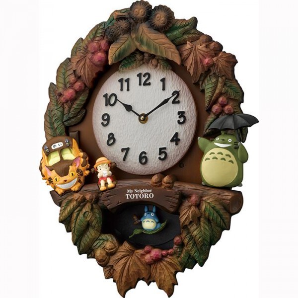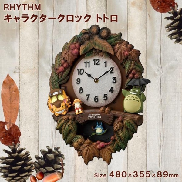 | 「となりのトトロ」がもつ作品のイメージである「自然」「温かみのある世界観」を反映しつつ凝縮感のある外観を創り込むことで、楽しさや賑やかさをもつ「となりのトトロ」の世界を感じられる商品に仕上げました!小トトロの飾り振り子と、オカリナを吹くメイちゃんのモチーフもポイントのクオーツ掛時計です。 |