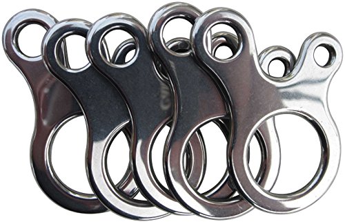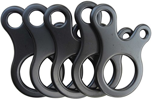 -. Feature : Material: high quality aluminum and metal / Dimension: 3 holes, one big and two small, approx 4.8cm x 2.6cm x 0.4cm(L x W x T) / Adjusting the line to any length you like with these convenient adjusters, quick adjustment and strong enough for daily use / Great equipment for camping, hiking, backpacking, picnic, shelter shade canopy outdoor activities / Package included: 5 x Guyline Cord Adjusters