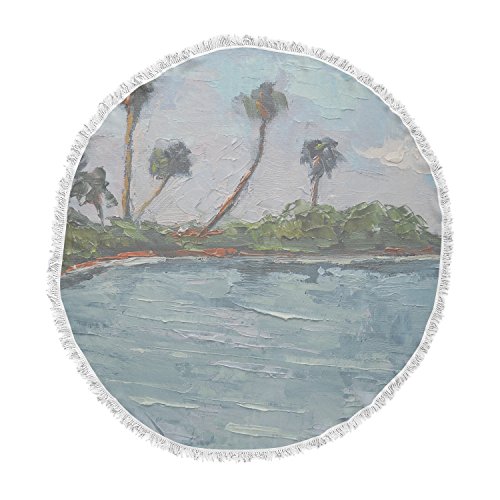 KESS InHouse Carol Schiff Blue Lagoon Aqua Green Round Beach Towel Blanket