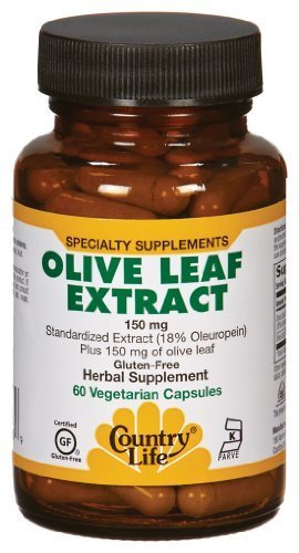 Studio : Country Life Publisher : Country Life Binding : Health and Beauty Product Description Established 1971 Certified Gluten-Free 150 mg Olive Leaf Extract: 18% Oleuropein Possesses Antioxidant Properties Dietary Supplement Kosher Parve - Our Pledge of Integrity - Authenticity Cleanliness Freshness Consistency Accuracy Olive Leaf Extract contains a standardized measure of 18% Oleuropein, a phenolic compound possessing antioxidant properties which is found in the olive leaf. Olive Leaf Extract is a Mediterranean-inspired herbal supplement with known antioxidant properties. 0