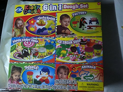 Kiddy Dough 6 in 1 Dough Set Kiddy Dough 6 in 1 Dough Set Includes: Pasta Maker Super Candy Shop People Factory Ice Cream Shop Animals Great gift for both boys and girls