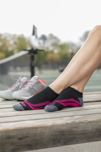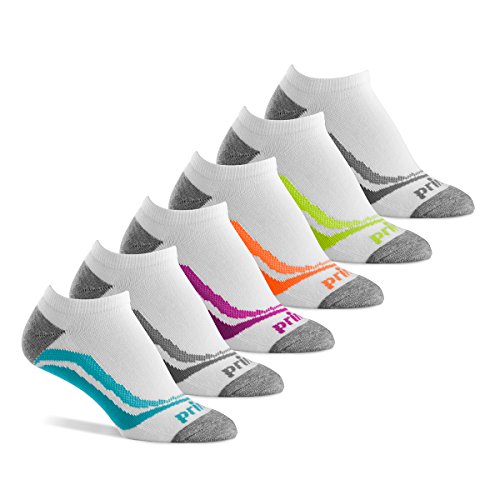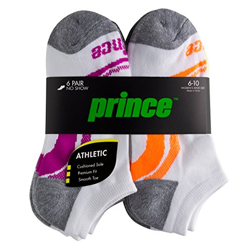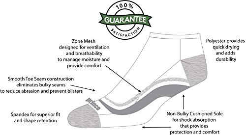 -. Binding : Apparel -. Brand : P.R.Ince -. Department : womens -. Feature : PREMIUM COMFORT FIT: Spandex blend forms to the foot and provides superior shape retention / CUSHIONED SOLE: Non-bulky for shock absorption that provides protection and comfort / BREATHABLE: Zone mesh design coupled with a lightweight polyester blend increases ventilation to control moisture and keep feet cool and dry / SMOOTH TOE SEAM: Provides a seamless feel by eliminating bulky seams to reduce abrasion and prevent blisters / 100% SATISFACTION GUARANTEE -. IsAdultProduct : 0 -. ProductGroup : Apparel -. ProductTypeName : SOCKSHOSIERY -. Title : P.R.Ince Women's No Show Athletic Socks with Cushion for Running, Tennis, and Casual Use (6 Pair Pack)