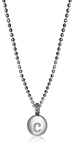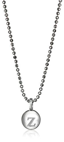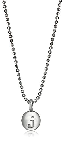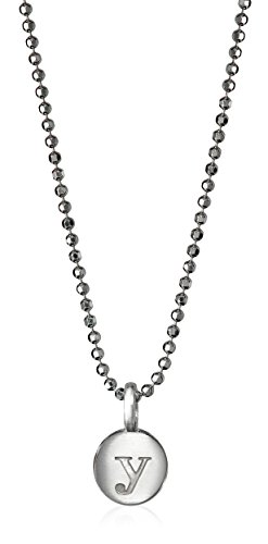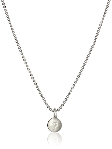 Sterling silver necklace featuring small letter or punctuation pendant suspended from bead chain