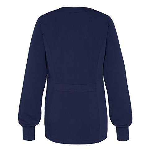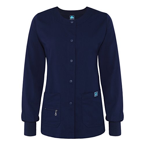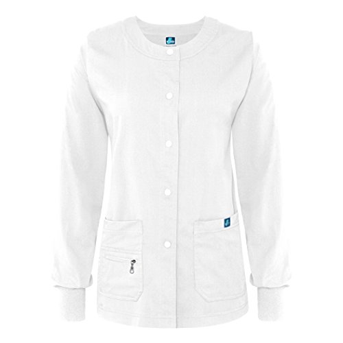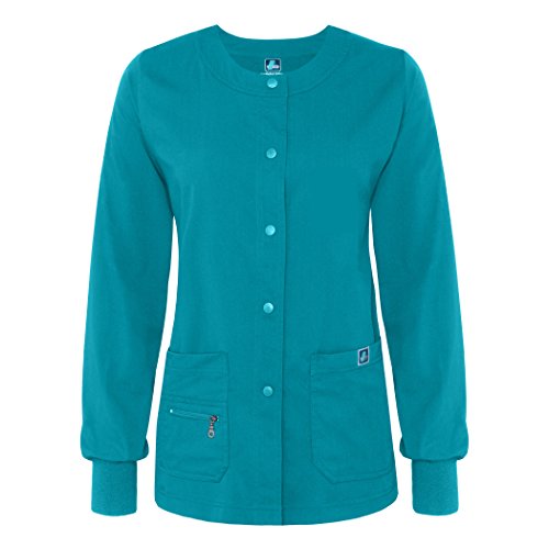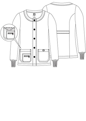 The classic warm-up jacket goes luxe. Traditional styling includes stitched bandedcrewneck, stitched placket with snap closures and soft, snug knit cuffs. Large patch pockets arelayered with a smaller zipper pocket and have hidden pen tabs within. Princess seams shape frontand back. Back belt detail provides a finishing touch.Center back length for size Medium: 27Feature