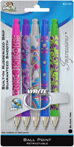 -. Title : Write Dudes Style Comfort Grip Retractable Ballpoint Pens, Medium Point, Assorted Colors, 5-Pack (41359)