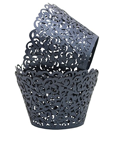Sharing Star 100 Pieces Filigree Artistic Muffin Case Cupcake Paper Cup Liner Little Vine Lace Laser Cupcake Wrappers for Wedding Party Birthday Decoration (Deep Gray)