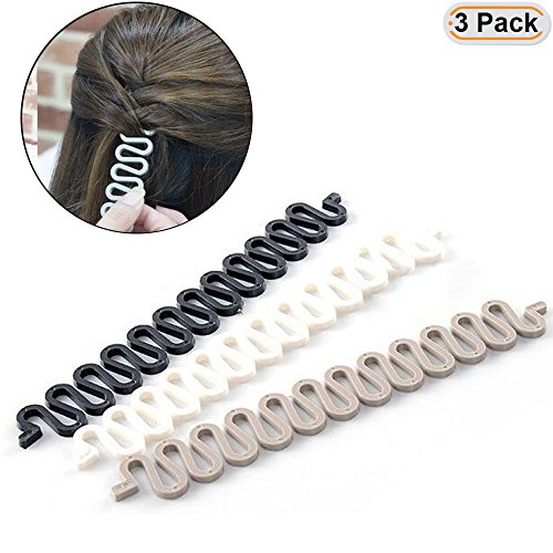 Hisight 3PC Magic Hair Clip Braider French Twist Plait Hair Braiding Tool Holder Roller DIY Bun Maker Hairstyle Styling Accessory Fashion Salon (Black、white、grey)