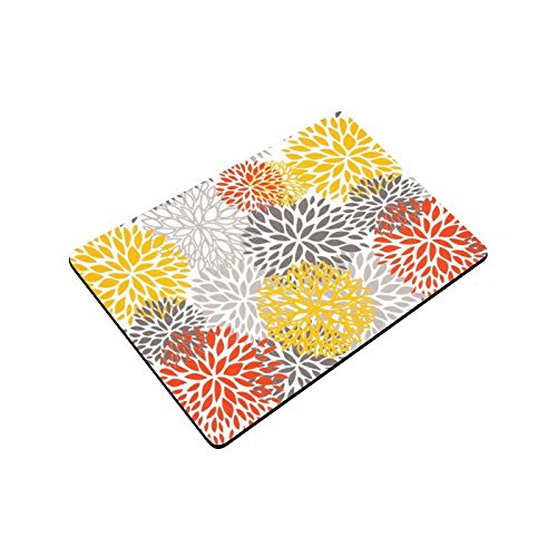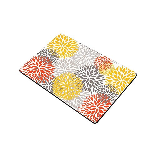 -. Title : 23.6"(L) x 15.7"(W),3/16" Thickness, Gray Yellow Red Dahlia Flower Floral Indoor/outdoor Floor Mat Doormat