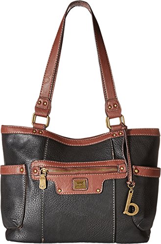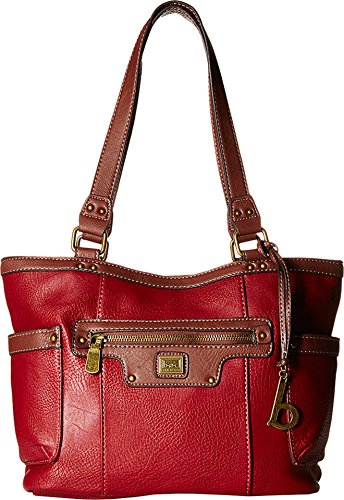 Magnetic snap closure. Dual shoulder straps. Front zip pocket. Slip pocket on each end. Flat base provides upright structure. Fully lined interior includes a center zip compartment, back-wall zip pocket, and organizational slip pockets. Imported.