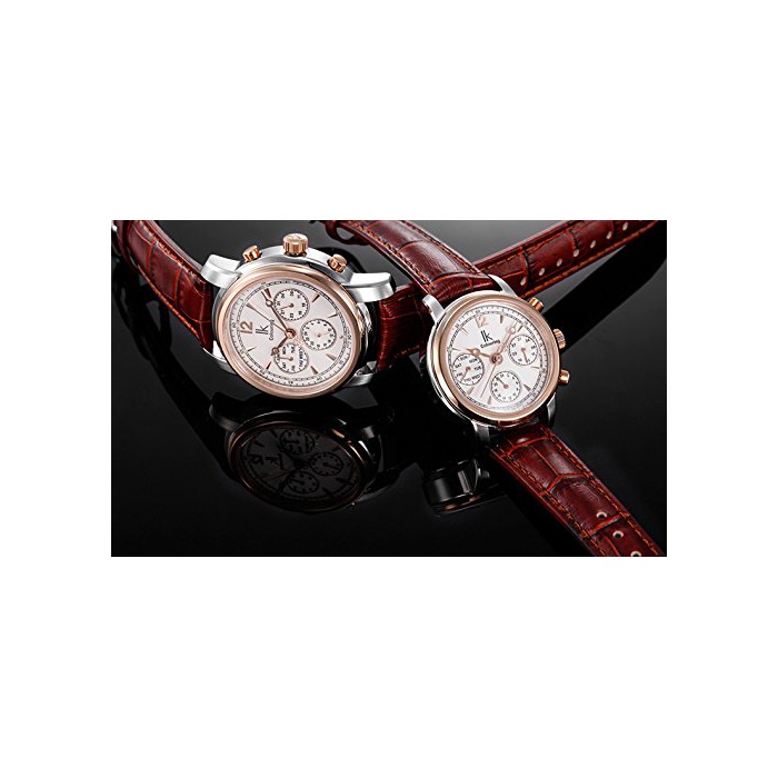 원본상품명: GuTe出品 ロズゴルドにホワイト トリプルカレンダ ブラウン 革バンド カジュアル エレガント 機械式 自動き レディス 腕時計