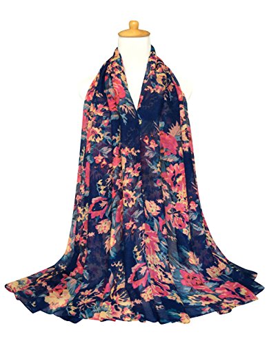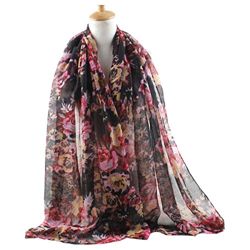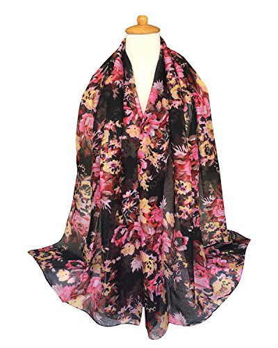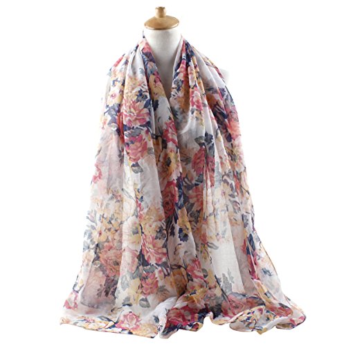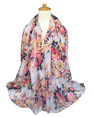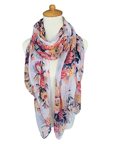 GERINLY Lightweight Scarves: Fashion Flowers Print Shawl Wrap For Women