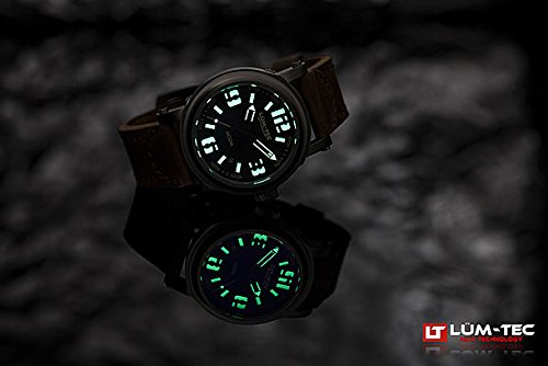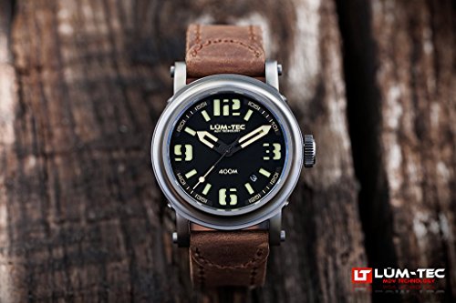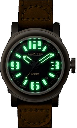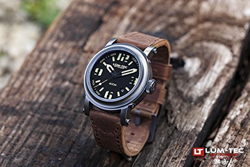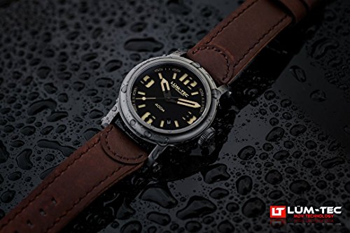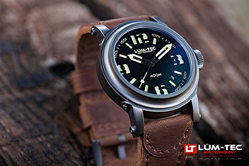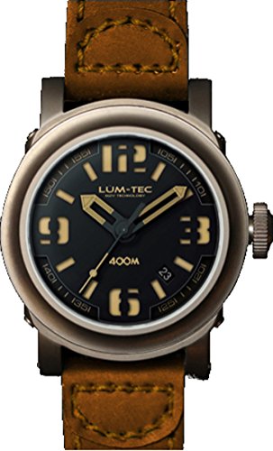 Studio : Lum-Tec Publisher : Lum-Tec Binding : Watch Product Description Specs: 42mm width excluding crown 22mm lug width 13mm thick 316L Stainless steel case Bead blasted titanium carbide PVD (titanium color) Sapphire crystal with double side clear anti-reflective coating Screw lock crown with double diamond sealing system High tech Viton® gasket MDV Technology old radium luminous with matte black CNC cutout dial Threaded solid 316L stainless steel caseback 400 meters/1312 ft. water resistance Brown leather strap with vintage stitch. 22/22 size Precision tuned 28,800 BPH Miyota 9015 Japan automatic movement with hand winding and hack feature One year limited warranty Limited numbered series of 100 Free lifetime timing adjustments. 0
