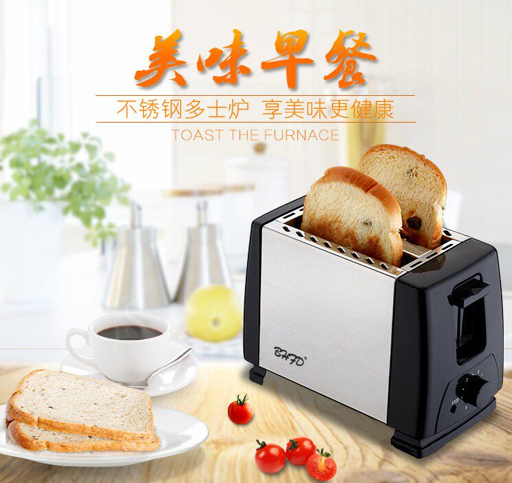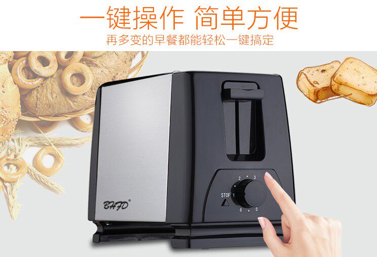小提示:第一次使用前,请别放面包片,让面包机工作两分钟左右,会有一定量的烟冒出来,这是磨合期正常的现象,让其去去气味 然后就可以开始烤面包了。