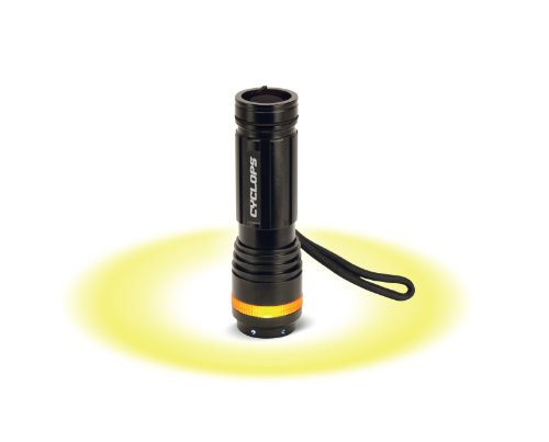 Studio : Cyclops Publisher : Cyclops Binding : Tools Home Improvement Product Description The Cyclops Hi Output LED Flashlight with Strobe has 3 modes: 100% / 75% / Strobe. It has a burn time of 9 hours on High, and 37 hours on Low. It is made of aviation grade anodized aluminum, and has a rear tactical switch making it easy to turn on and off. There is a color ring that can be used for an emergency blinker. This powerful flashlight has 80 Lumens of light output, with a bean distance of 300 feet. Powered by 3 AAA batteries that are included. 0