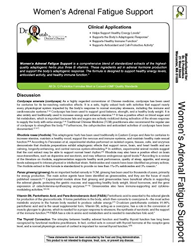 Women's Adrenal Fatigue Support is a comprehensive blend of standardized extracts of the highest-quality adaptogenic herbs plus three B vitamins. These ingredients aid in adrenal hormone production and support the body's adaptogenic response. The formula is designed to support healthy energy levels, antioxidant activity, and healthy immune function.Feature